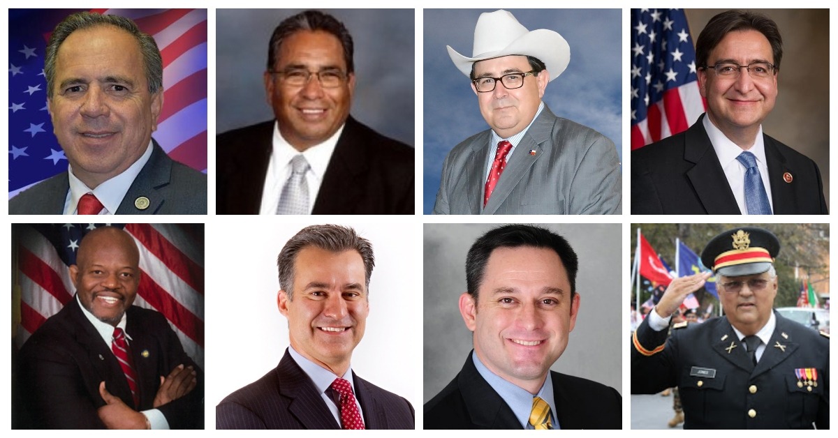 (Top row, from left to right) Tomas Uresti, Jesse Alaniz, Peter Flore, and Pete Gallego (Bottom row, left to right) Carlos Raymond, Roland Gutierrez, Tony Valdivia and Charlie Jones