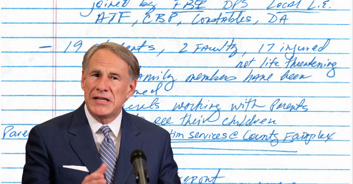 Handwritten notes taken by Texas Gov. Greg Abbott, taken as law enforcement officers briefed him on the Uvalde school shooting, exposed a different reality than the one he initially disclosed in news conferences on May 25th.