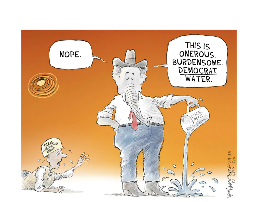 Top 5 This Week Texas Supreme Court Primary Shakeup Ends Before It Begins: Two Justices Now Unopposed Elections RA Staff - December 26, 2025 Texas Billionaire Brockman’s Estate Pays $750 Million to Settle Historic Tax Case Lifestyle RA Staff - December 26, 2025 How Are Texas High School Basketball Championships Decided? High School Basketball RA Staff - December 26, 2025 Texas Camps Install Flood Sirens After Deadly Camp Mystic Flood Public Safety RA Staff - December 25, 2025 Christmas Day 2025: What’s Open, What’s Closed, and Where You Can Still Go Lifestyle RA Staff - December 25, 2025 Related Posts Continue to the category Trade War Political Cartoons Appetite for Destruction Political Cartoons State of the Union Political Cartoons Oval Office Meeting Political Cartoons Eye of Sauron Political Cartoons Measles Outbreak Political Cartoons Thirsty in Texas Author: RA Staff July 5, 2023 Less than 1 min.read FacebookTwitterEmail Tagscartoonnick anderson Previous articleTexas AG Paxton Dodges Testimony, Sparks SpeculationNext articleTragedy Strikes Fort Worth: Gunfire Erupts After Fourth Of July Fest, Leaving Three Dead RA StaffWritten by RA News staff. LEAVE A REPLY Cancel reply Comment: Please enter your comment! Name:* Please enter your name here Email:* You have entered an incorrect email address! Please enter your email address here Website: Save my name, email, and website in this browser for the next time I comment. Δ