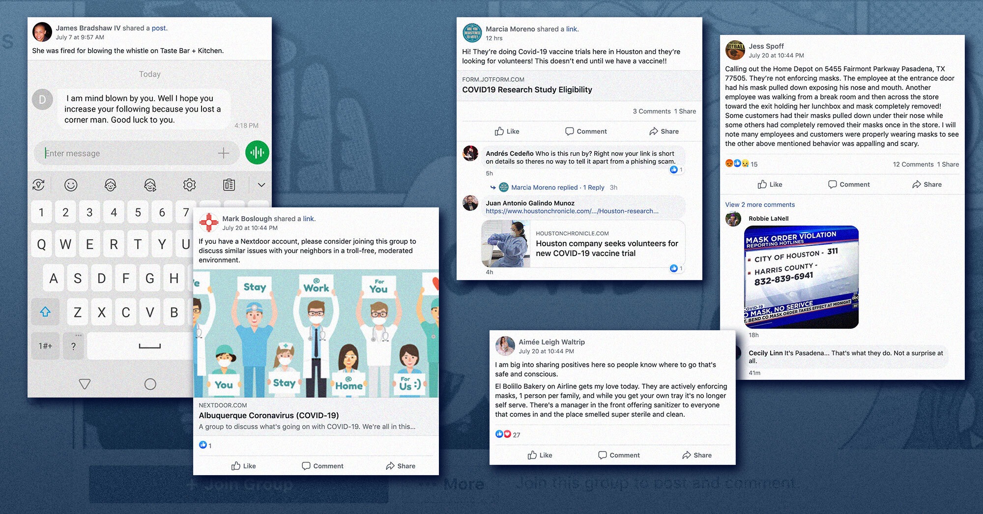 Another took a fast food restaurant to task, writing, the [sic] on Veterans and the Beltway has had several employees test positive for COVID and is refusing to close and still putting the sick employees on the schedule!!! And this is a fact!! No rumor.”