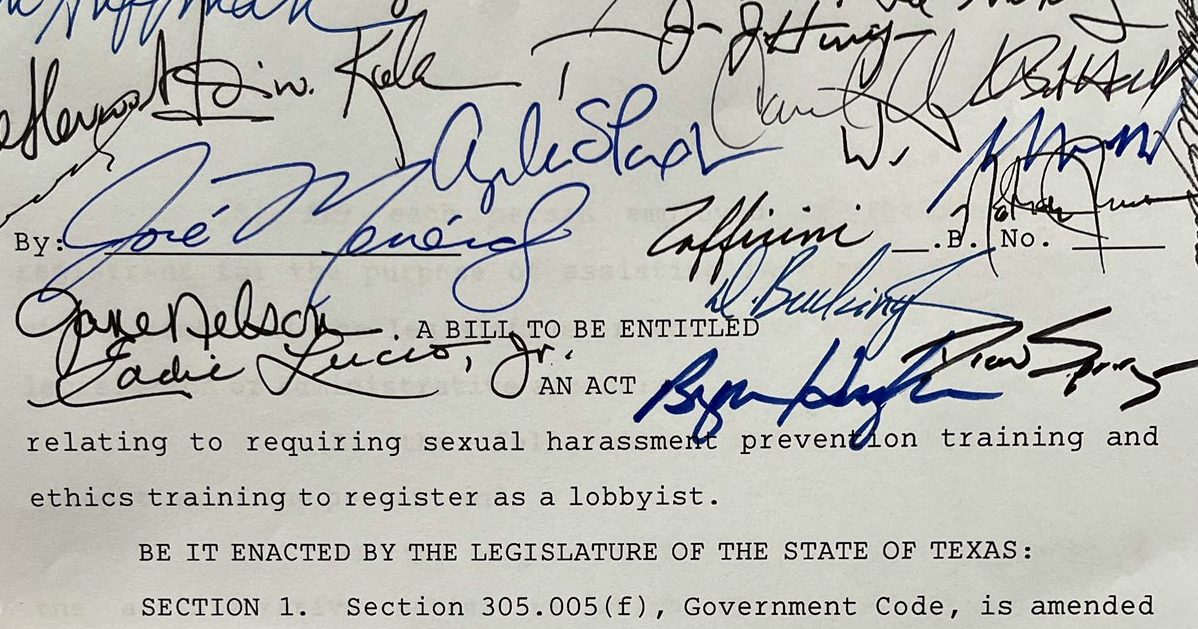 The state senator tweeted, “This bill is replicated after the Texas Senate policy which requires completion of sexual harassment training every 2 years by Senators & all staff. If lobbyists are going to work in & around Capitol, & directly with our staff, they too should be held to a responsible standard.”