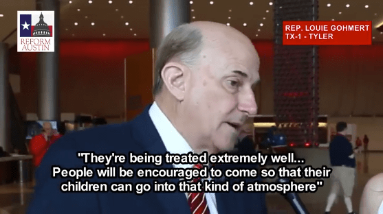 “There may be an isolated case…they’re being treated very well,” U.S. Rep. Louie Gohmert told Reform Austin. “The food they’re getting, the education, the exposure…There’s the possibility that people will be encouraged to come so their children can go into that kind of atmosphere.”
